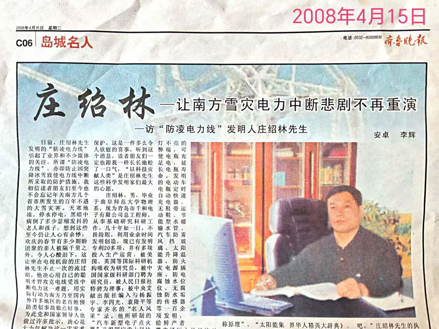 庄绍林,教授,中共党员。我国著名科学家,发明家,国家科学院(北京)特聘研究员,2009年评为“中国十大创新人物”,曾获国际发明金奖、国家重大科技项目创新奖等。中国邮政曾用其头像制作过邮票。《中央文献出版社》在《时代楷模》、《时代先锋》等书,与钱学森、袁隆平、钟南山、杨利伟的事迹同版刊登,在庆祝新中国成立70周年,《建功立业新时代》书刊、《中国网》、《人民网》、《青岛日报》《齐鲁晚报》、《影响力人物》等都有所报道。 特别专利:“酒变纯器”、“无腐蚀的传感器”、“酒优化发生器”等。 在国家级刊物上发表论文二十余篇,如:“架空高压输电线自动防凌装置”、“健康白酒的必经之路”等。